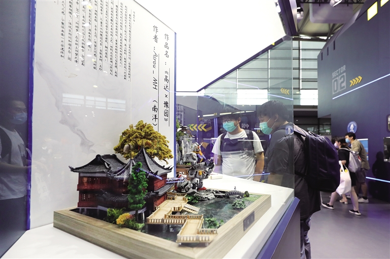 一组高达机器人模型结合中国传统建筑的展品吸引参观者驻足观看。日前,2021年第十九届中国国际数码互动娱乐展览会(ChinaJoy2021)在上海开幕。本届展会以“科技创梦、乐赢未来”为主题,展示最新数字娱乐产品,主打新科技驱动下“娱乐+科技”的数字娱乐新生态,助推数字娱乐新体验。据新华社电