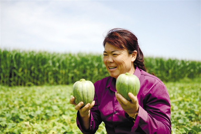 “我们这儿地表土层为壤质灌溉层,含钾量高,对糖和淀粉的积累非常有利,适合香瓜的生长,所以这里家家户户都种‘灯笼红’。现在大棚种植平均亩收入8千至1.2万元,最高可达2万元;温室种植平均亩收入3至4万元,最高可达6万元。靠种瓜致富的人家越来越多。”跟土地打了一辈子交道的新丰村党支部书记赵海龙告诉我们,从传统农业到现代农业再到特色产业,国家一系列的支持政策、惠民政策他都历历在目。
