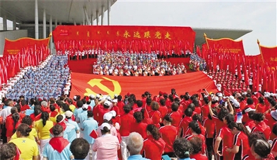 今年时值中国共产党成立100周年,这首歌更是在中华大地上一次次唱响。嘉兴南湖边上、上杭古田会议旧址、延安宝塔山下、平山西柏坡……一场场以重温红色历史、庆祝建党百年为主题的快闪活动得到了社会各界的热情响应,大家从四面八方汇聚而来,庄重而深情地唱响同一首歌。