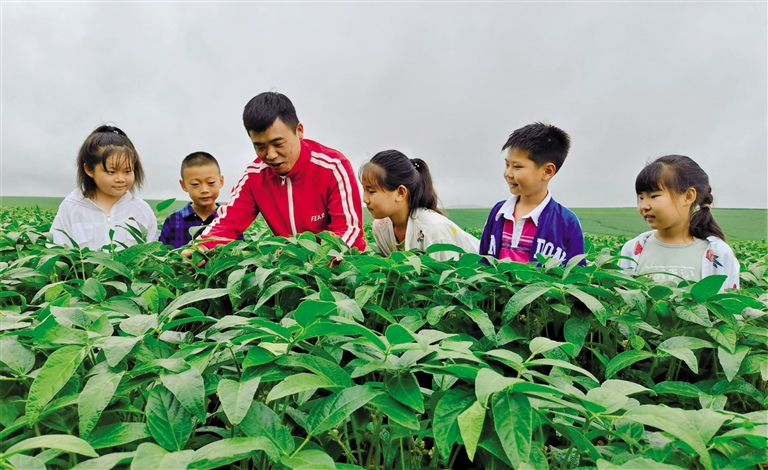 “现在是大田农作物田间管理的关键时期,你们看这大豆的长势多好!”暑假期间,呼伦贝尔农垦集团大河湾农牧场开展暑假实践活动,农场人员教孩子认识粮食作物、讲解粮食生长周期,让孩子们从小树立爱粮、惜粮、节粮意识。