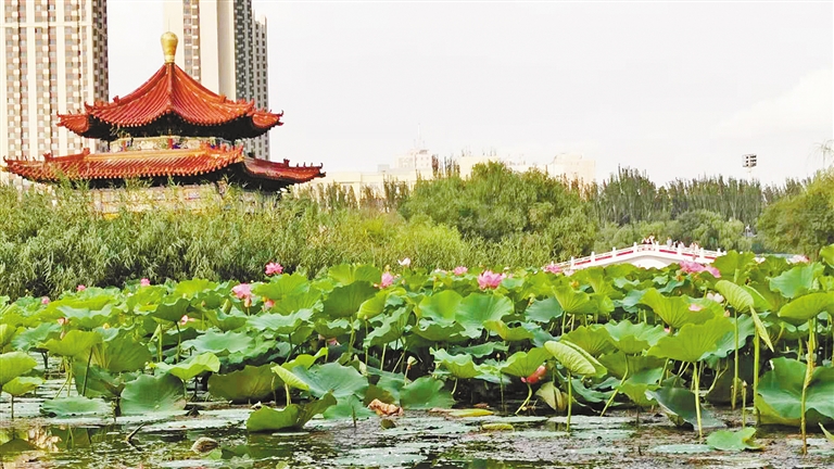 “灼灼荷花瑞,亭亭出水中。”呼和浩特市青城公园荷花盛开,引来游人驻足观赏。 文/图 杨文瑜