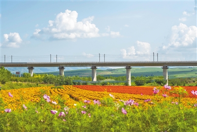 赤峰市红山区文钟镇三道井子村百亩花海景区,是赤新线旅游公路沿线观光景区之一。景区内种植有金盏菊、百日草、矢车菊、琉华菊、花葵、锦葵、蜀葵等多种花卉。 文/图 乌学明
