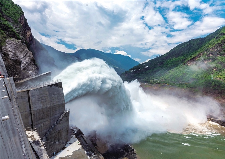 正在进行试验性泄洪的白鹤滩水电站1号泄洪洞(9月2日摄)。据三峡集团白鹤滩工程建设部消息,白鹤滩水电站泄洪洞工程日前启动试验性泄洪,为后续工程安全度汛奠定了基础。泄洪洞工程是水电枢纽工程的主体建筑物之一,按照设计规划,白鹤滩水电站水库蓄水至785米高程后,泄洪洞即具备泄洪条件。试验性泄洪旨在准确监测泄洪时的流速、风速和震动情况,给后续工程泄洪安排提供科学依据。