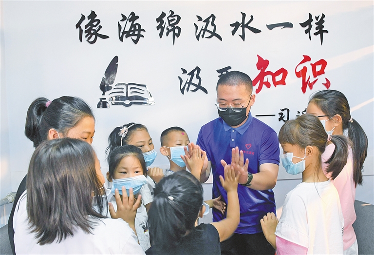 “做志愿者有什么心得感受?”“我觉得应该是‘被需要’的幸福感吧,自己也会从中得到乐趣。”00后志愿者王泓森这样总结他的志愿者工作。被十几个小朋友包围的“孩子王”王泓森是一名在校大学生,也是一名青年志愿者。这个暑假,他进乡村做志愿服务,为村里的孩子们讲解垃圾分类知识,陪伴孩子们一起读书、游戏,为老人们讲解疫情防控的知识。春运暖冬志愿活动、疫情防控志愿者、交通文明服务……他一直在坚持志愿服务工作。王泓森言语不多、朴实纯真,他说:“做志愿者,我打心底里只想服务好大家,当看到他们的微笑,听到他们说声‘谢谢’,看到自己身边的环境变得越来越好,我就觉得挺幸福。”志愿服务的路上,有辛苦、有赞美、有荣誉,这位年轻的“00”后对未来的路充满坚定,他说:“青年人,应该吃点苦,应该为社会做点贡献,因为志愿者工作,会让我的青春变得更加精彩更加有意义。”