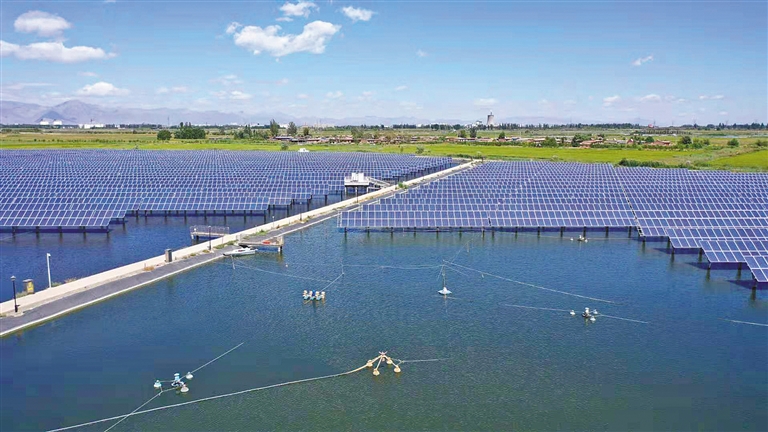 贺兰县渔业公园内的光伏养鱼基地。位于贺兰山下黄河之畔的宁夏银川市贺兰县,湿地、湖泊众多,具有渔业养殖的优势条件。当地渔业部门通过改良养殖品种、更新养殖技术、创新养殖模式,推进水资源节约集约利用,生态保护修复和环境治理,努力建设黄河流域生态保护和高质量发展先行区。新华社发