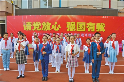 开学第一天,呼和浩特市新城区满族小学举行了主题升旗仪式。学生们用稚嫩有力的嗓音齐声朗诵“奋斗正青春,青春献给党。请党放心,强国有我!”升旗仪式展现了全校师生坚定理想信念、磨练坚强意志,永远听党话、跟党走,以崭新姿态迈进新学期、再踏新征程的信心和决心。见习记者 李超然 摄