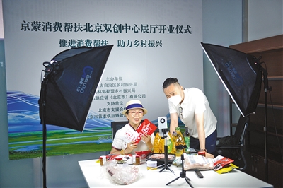 京蒙消费帮扶北京双创中心内蒙古展厅的建立搭建了展示、展销、体验、推介内蒙古绿色农畜产品平台,通过线下、线上、社会动员三种营销主体模式,全面打通了内蒙古帮扶产品生产、运输、包装、销售等全产业链条。