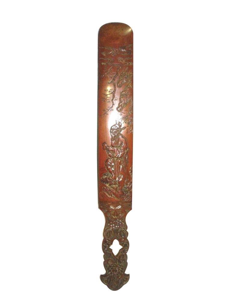 尊师重道是中华民族的传统美德。《礼记·学记》中说:“师严,然后道尊;道尊,然后民知敬学”,维护师道尊严,不仅要求学生的言行举止体现出对老师的尊敬和礼貌,更要从内心里敬重老师。笔者的藏友新入的这枚清代竹雕裁纸刀,便生动体现了这一传统美德。