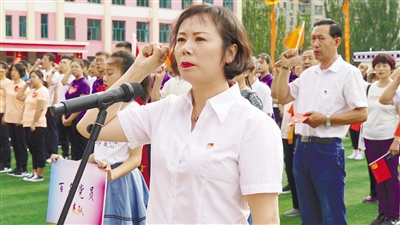 在区域运动会上,戴颖谦担任重温入党誓词领誓人。
