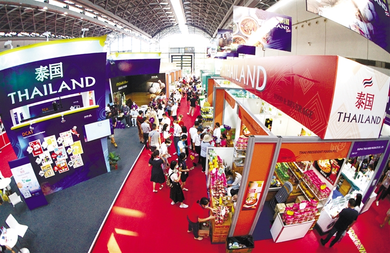 9月11日,在第18届中国—东盟博览会现场,参会者在东盟国家展区泰国馆参观。 新华社记者 周华 摄
