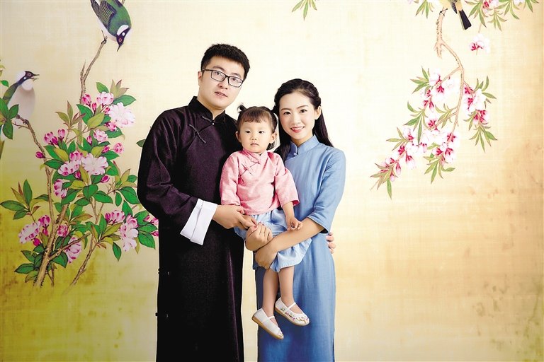 柴悠智在工作中认识了美丽的蒙古族姑娘邓玉霞,并爱上了她。2015年,二人共结连理,后来又迎来爱的结晶——聪慧可爱的女儿。邓玉霞出生于兴安盟科尔沁右翼中旗一个蒙古族家庭,是一名新闻工作者。柴悠智说,他们一家人互相尊重、理解、包容,把日子过成了人人羡慕的样子,他们的小家庭也是民族团结的缩影。(图片由邓玉霞提供)