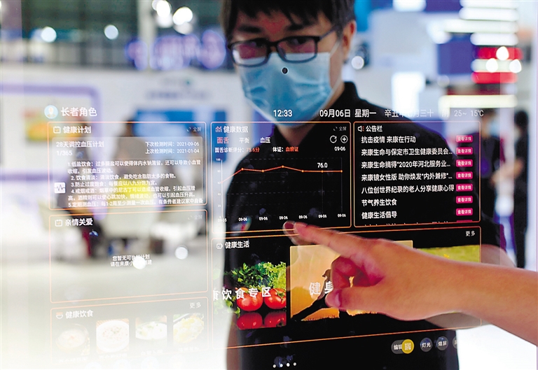 工作人员在操作智能镜子。近日,2021中国国际数字经济博览会在河北省石家庄市举行,共有468家企业参展,汇聚了国内外数字经济领域众多知名企业,一批“黑科技”成果集中亮相。 新华社发