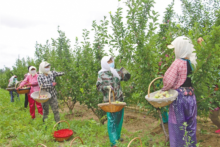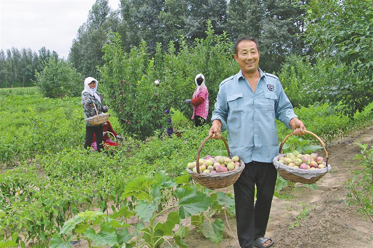 麦新镇坚持产业生态化思路,既要“绿水青山”,又要“金山银山”。在推进生态恢复过程中,积极引导群众发展果品经济林。王旭介绍,全镇共栽植经济林3.6万亩,主要品种有沙果、鸡心果、贵妃李子等,今年预计果品产量能达到800万斤,林果亩收益在5000元以上。说起未来发展,袁吉朱表示,十三排村将依托独天独厚的红色资源和生态资源发展旅游,不断壮大集体经济,让农民吃上生态饭。