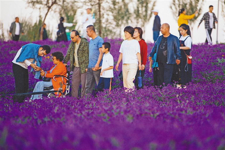9月26日,呼和浩特市市民来到大黑河畔沿线景观带休闲游玩。2021年,呼和浩特市园林服务中心对大黑河沿线石化桥以东区域30余公顷的绿地范围实施景观提升改造,其中南岸改造面积10公顷,北岸20余公顷。通过打造花镜广场、亲子乐园、雨水花园、自然修复地、马鞭草花田等景观,为市民提供了休闲游憩的好去处。本报记者 王晓博 摄