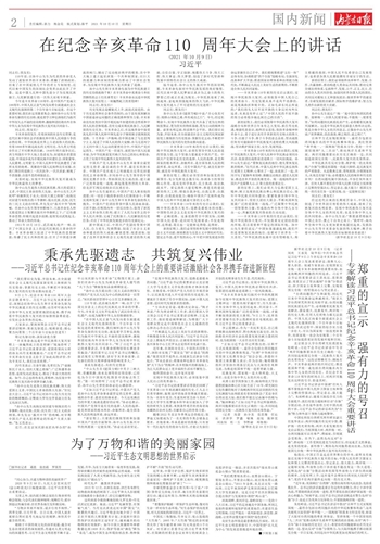 ~~~——习近平总书记在纪念辛亥革命110周年大会上的重要讲话激励社会各界携手奋进新征程