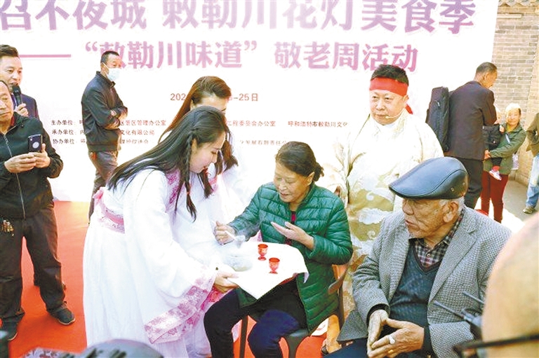 “活动举办了3天,从2020年10月23日开始,到10月25日重阳节当天结束。活动期间,凡65岁以上的老年人均可免费品鉴敬老餐,接受义诊,观看义演。”宋和平说,根据重阳节吃重阳糕、饮菊花酒的习俗,结合呼和浩特地区实际,敬老餐有草原炖羊肉、油炸糕、托县粉汤、羊肉臊子荞面饸饹等,并品尝托县黄酒、砖茶等;现场免费演出二人台、晋剧、爬山调、广场舞、街舞等,还有中医、蒙医和西医等不同类型的专家现场免费给老年人检查身体。