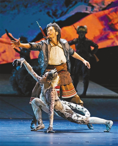 海拔4800米的雪域高原上,一湾碧水静静流淌,在水源的不远处,羚羊自由奔跑,雪豹伺机而动,雄鹰翱翔天际,牦牛悠然吃草……这样唯美的画面不是来自某部纪录片或者电影,而是舞剧《大河之源》最后一幕的场景。