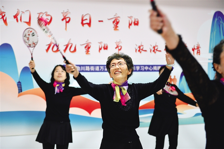 社区老人在老年学习中心太极柔力球班认真训练。呼和浩特市赛罕区万正尚都社区新时代文明实践站以党建为引领,进一步创新为老服务工作方法,通过开办老年学习中心,提升辖区老年人的获得感和幸福感。