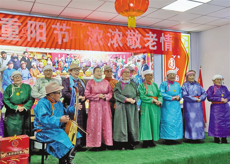 在10月14日哈乐穆吉养老服务中心举办的庆祝重阳节联谊活动上,阿巴嘎旗第一小学的学生们将自己亲手制作的手工作品献给养老院里的高龄老人,并献唱歌曲为老人祝寿。当天的活动也成为学生们的一堂生动“实践课”,增强了学生们敬老爱老的意识,激励他们将中华民族的传统美德传承下去。当天还有精彩的歌舞表演、马头琴独奏,养老院里的老人们还带来了小合唱,现场十分热闹。