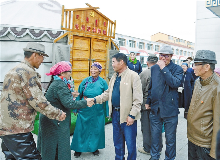 10月13日,中华民族传统佳节重阳节的头一天,在阿巴嘎旗哈乐穆吉养老服务中心的蒙古包里一片祥和,老人们聚精会神地聆听着“七一勋章”获得者廷·巴特尔讲党课。