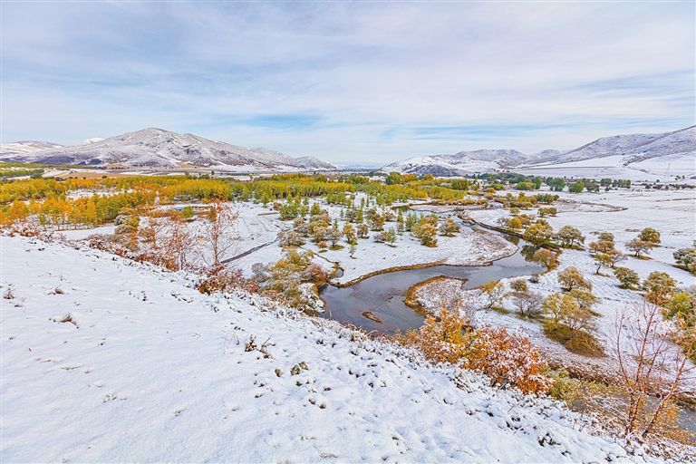 兴安盟科右前旗索伦镇,山树叶落,群峰披雪;河谷溪水潺潺,青松苍翠,杂树缤纷,秋冬交缠,美景天成。 文/图 高元智
