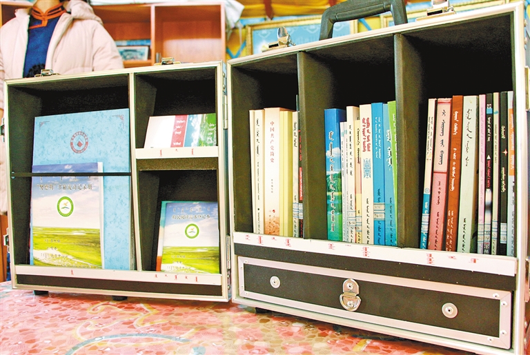 近年来,锡林浩特市为推进全民阅读活动向纵深开展,不断丰富拓展新时代文明实践牧区综合服务活动的内容和形式,创新实施“‘努德勒’书箱”,让党的最新理论政策和牧民适用的技术文化知识,以最快的速度送到千家万户。