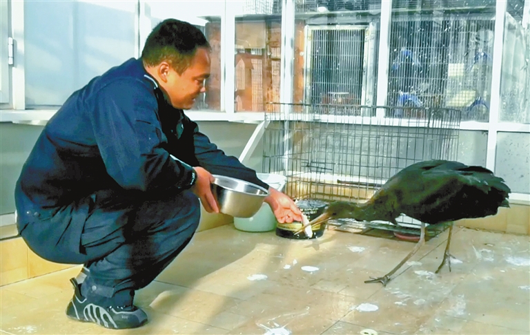 值班民警到达现场后仔细检查发现,这只“大鸟”翅膀受伤,已无法正常飞行觅食,民警将它带回所里进行救治。经了解得知,这只受伤的“大鸟”系国家一级重点濒危保护动物黑鹳,在全世界仅存2000多只,其中有1000多只在我国境内,其珍贵程度不亚于大熊猫,故又被称为“鸟类中的大熊猫”,也是白俄罗斯的国鸟。