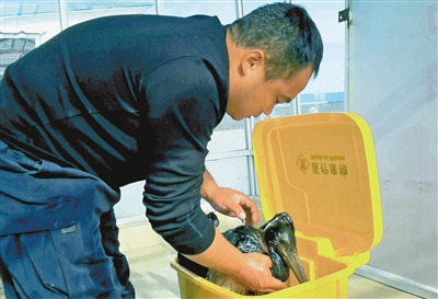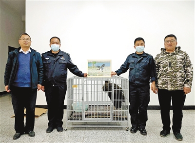 日前,民警们与相关部门工作人员一同将这只伤愈的黑鹳安全转送至山西省灵丘县黑鹳保护区。