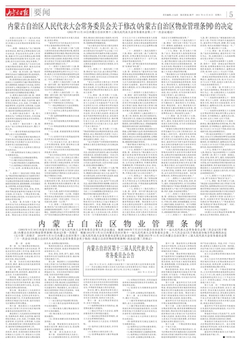 内蒙古自治区人民代表大会常务委员会关于修改《内蒙古自治区物业管理条例》的决定