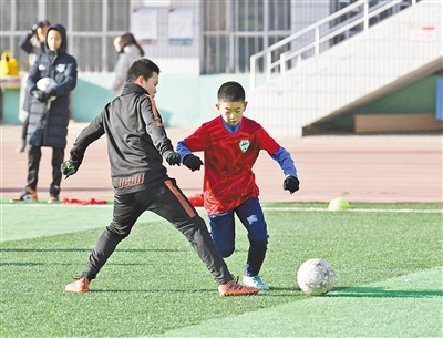 冬日里,和煦的阳光透过淡薄的云层,洒向正奔跑在绿茵场上的足球少年们。