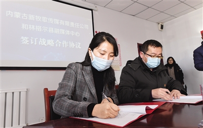 座谈会上,内蒙古日报社内蒙古新牧歌传媒有限责任公司与和林格尔县融媒体中心签订了战略合作协议,以进一步提升旗县级融媒体中心的传播力、引导力、影响力、公信力。