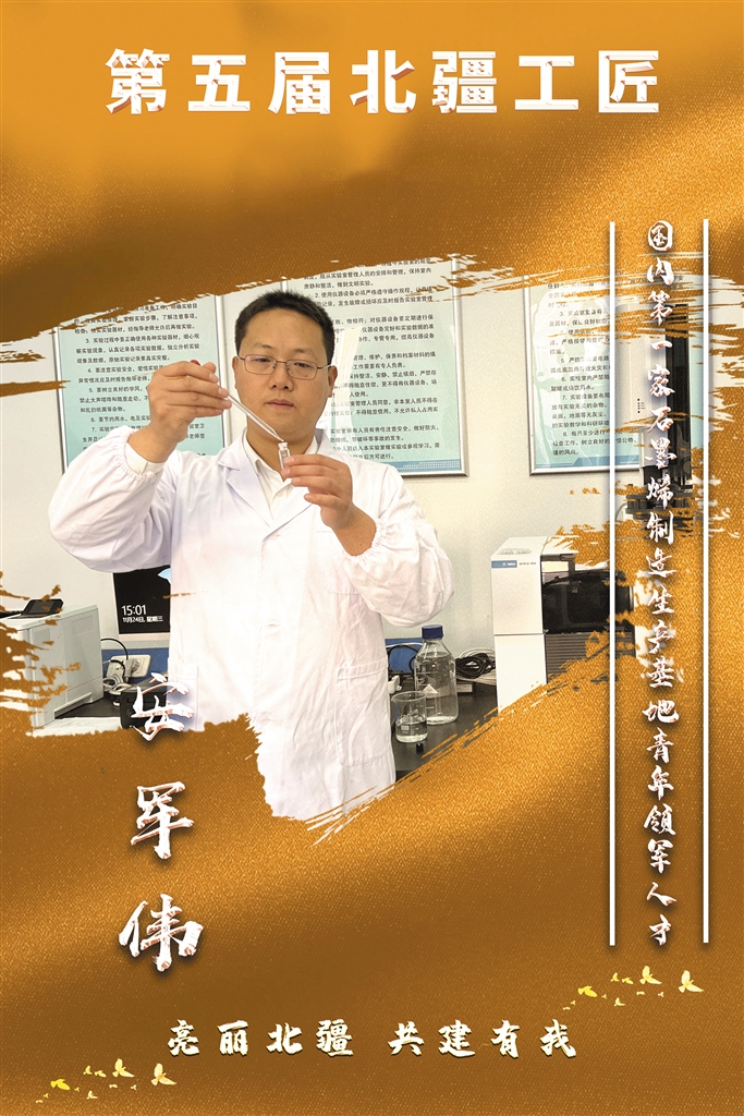安军伟,2015年清华大学博士后出站,2016年放弃工信部机关编制,到兴和县石墨矿区工作至今,带领清华、北航、航天五院8名博士组成的团队,5年致力于一线研发,主持参与自治区重大专项和战略高新4项,突破石墨烯低温负压规模化可控制备及应用技术瓶颈,新增产值1.47亿元,利税321.5万元,申请专利15项,制定国家行业标准3项,发表SCI论文23篇;相关技术获2017年国家技术发明二等奖。参与扩建的年产2000吨石墨烯氧化物浆料生产线投资1.8亿元,直接经济效益4亿元/年,应用于华为、小米、OPPO、苹果等电子器件的散热上,获石墨烯科创板企业合同订单,引领兴和地区成为石墨烯制造国内第一的生产基地。除进行石墨烯攻关外,他还心系农民之苦农村之困,以先进适用技术解决农村生活脏乱差污染问题,研发生物秸秆型煤装备并获乡村振兴局立项,在兴和县店子镇应用推广。他获得自治区青年创新人才奖、国务院政府特殊津贴、自治区草原英才等荣誉。