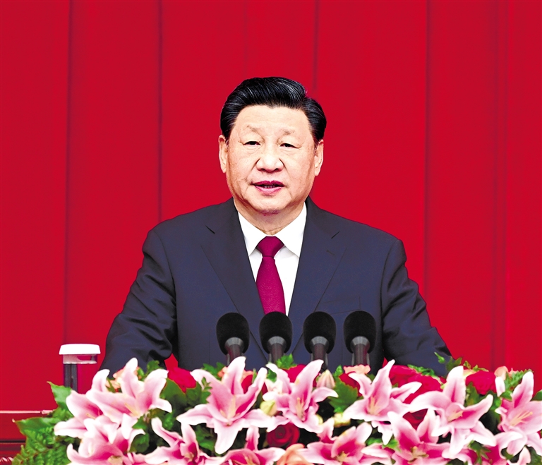 习近平指出,2021年,无论是在中国共产党历史上,还是在中华民族历史上,都是具有里程碑意义的一年。中国共产党迎来百年华诞,中共十九届六中全会通过中国共产党第三个历史决议,第一个百年奋斗目标胜利实现,在中华大地全面建成小康社会,历史性地解决了绝对贫困问题,开启全面建设社会主义现代化国家、向着第二个百年奋斗目标进军的新征程。