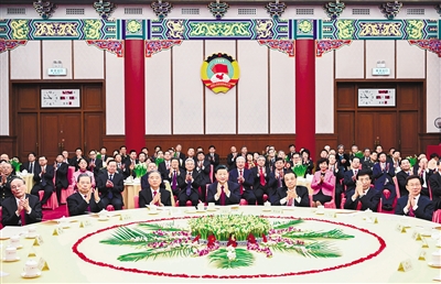 在京中共中央政治局委员、中央书记处书记,全国人大常委会、国务院部分领导同志,全国政协领导同志和曾任全国政协副主席的在京老同志出席茶话会。