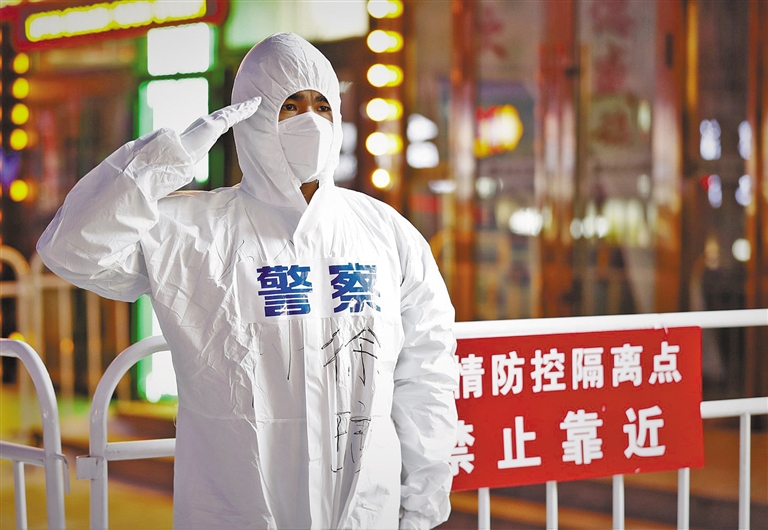 满洲里疫情发生一个月以来,徐瑭和战友们负责辖区疫情管控小区执勤工作。严峻的疫情防控形势和极寒的天气考验着每一位执勤民警,他们有时在卡口一线、有时在隔离酒店、有时在小区门口值守。当他们在零下30多度的深夜里巡逻值守时,手脚经常是僵硬的。但没有一个人退缩,也没有一个人休过假。