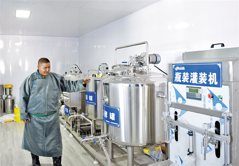 经营酸马奶产业以来,巴雅斯古楞家生产经营逐步走向专业化、规模化。“想进一步扩大规模,可是没有好的冷藏设施。在我一筹莫展的时候,乡村振兴的好政策眷顾草原,我家申请到了‘酸马奶加工小作坊’项目,更加鼓舞了我要带领邻居们致富的信心。”巴雅斯古楞高兴地说。