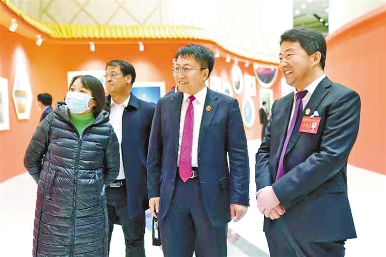 走着走着,王雪峰伫立在一幅名为《永远跟党走》的图片前,他说:“星光不负赶路人,更多精彩待书写。2022年,我们将更加紧密地团结在以习近平同志为核心的党中央周围,在鄂尔多斯市委政府和区委的坚强领导下,同心同德、奋发作为、扎实工作,以‘争当表率、争做示范、走在前列’的奋斗姿态和‘发展速度争先进位、发展质量引领示范、贡献份额追赶超越’的优异成绩迎接党的二十大胜利召开!”