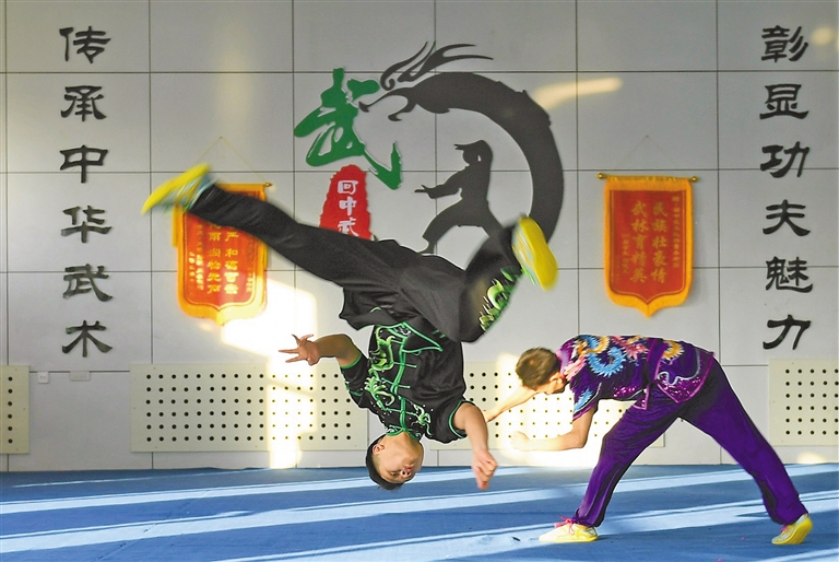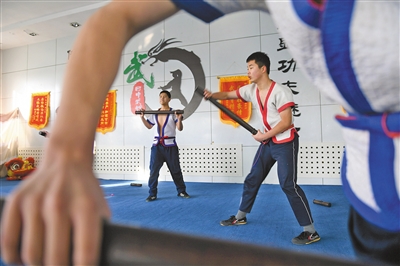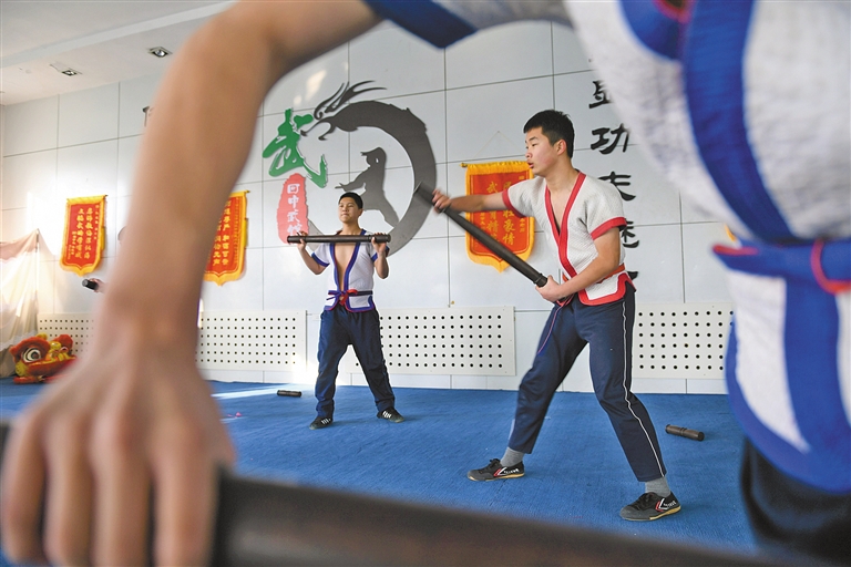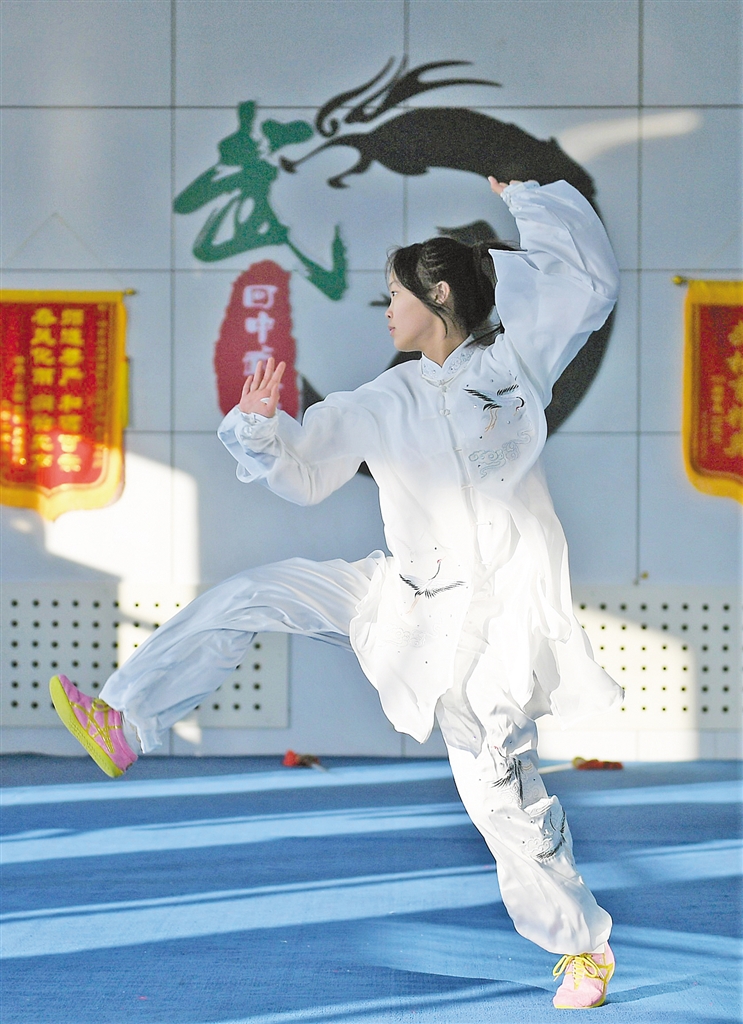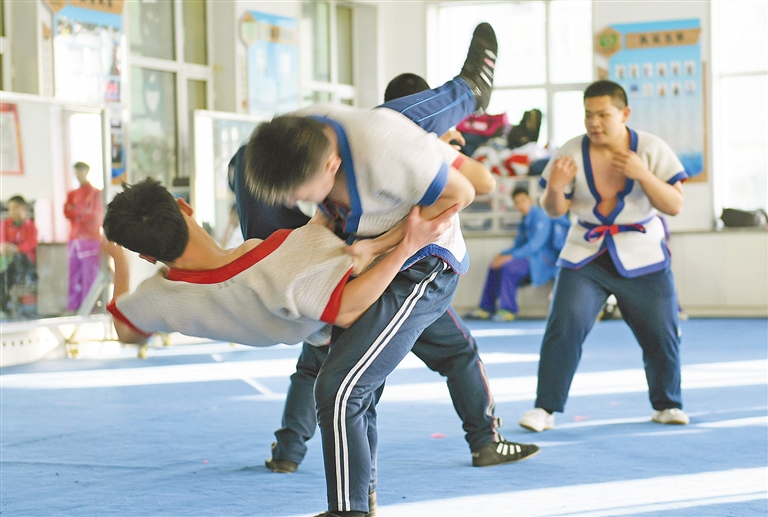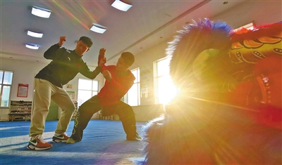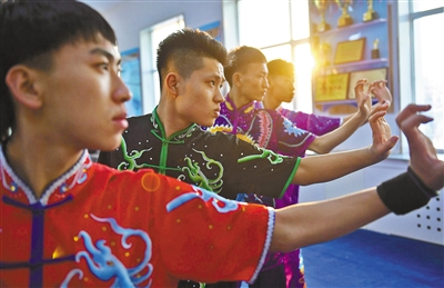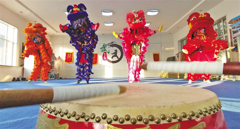 伴着震天的鼓声,一伏一跃,一蹲一站,四头威风凛凛的雄狮举手投足间舞态生风,很难想象这段精彩的舞狮表演者竟是一群稚气未脱的中学生。“其实舞狮与武术是相通的,这些孩子都有武术功底,他们学习武术时间最短的一年多,时间长的有三年了。”呼和浩特市回民中学武术教练杨雪冬脸上略带骄傲地说。2021年,国家教育部公布第三批全国中小学中华优秀传统文化传承学校名单,内蒙古54所学校上榜,呼和浩特市5所学校在榜,其中,呼和浩特市回民中学的武术和摔跤项目位列其中。2005年,呼和浩特市回民中学创编校本武术教材,在初一年级尝试开设武术课,成立学校武术队,并设有专门的武术场馆,如今武术课已经作为校本体育课程纳入到体育课教学。2009年,学校还自编《功夫青春》武术操在全校推广,目前,全校学生都已熟练掌握全套武术操。在发展武术项目的同时,2012年,该校还成立了中国式摔跤队,期间已有300余名学生参加训练,并获得多项国家级和自治区级奖项。通过学习武术和中国式摔跤,近年来,学生们纷纷考入天津体育学院、北京体育大学、哈尔滨师范大学等理想学府。呼和浩特市回民中学副校长弓慧扬说:“学校历来高度重视中华优秀传统文化的传承,结合学校实际制定实施了一系列政策措施,推动优秀传统文化进课堂、进课间、进活动、进社团。传承中华优秀传统文化是全社会共同的责任,学校在今后的教育教学工作中会继续不遗余力推进中华优秀传统文化的传承和发展。”