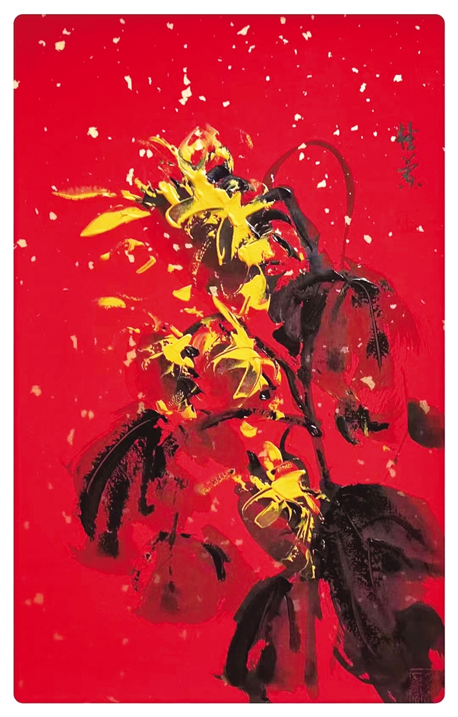在她笔下,河套葵花有幽怨,有泣诉,有欢欣,有斐然;有热烈地跃动,有静静地盼望,有深深地爱恋,有苦苦地付出。融情化意,物我皆从;光影形动,身心合一。画家将心中的悲喜娇嗔,笑怨伤情,都化入了葵影舞动之中。博大的气象,酣醉的笔墨,开阔空灵的画面,河套乡愁在她笔下浓情演绎,把一切的爱与恋深深地容纳了进去。