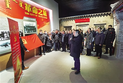 随后,近50名党员一起参观了城市发展展厅、建设成就展厅、历史文化展厅等。在红色历史展区,面对鲜红的党旗,全体党员高举右手,重温入党誓词。铿锵有力的誓言,道出了每一名共产党员忠于党、忠于祖国、忠于人民的心声,激励大家不忘初心、牢记使命。