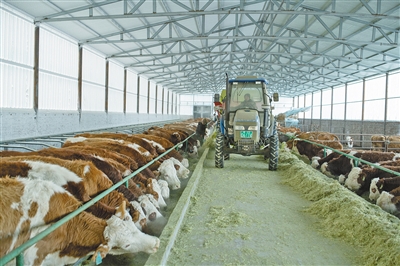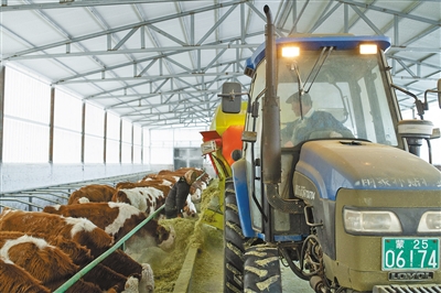 “去年建成了这个养殖场,添置了新的饲养设备,今年又能进一步扩大养殖规模了。”在呼热图淖尔苏木扎嘎斯台嘎查,格·阿拉希正在自家的养殖场内给牛群喂草料。他饲养是优质的西门塔尔牛,得益于该旗大力推进良种肉牛繁育体系化的政策,加上科技化科学饲养,格·阿拉希一家年收入有了大幅的提高。