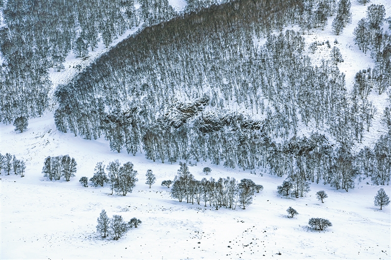 克什克腾旗乌兰布统景区,群山覆雪,林木苍劲,淡雅如画。 文/图 乌学明