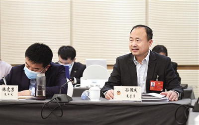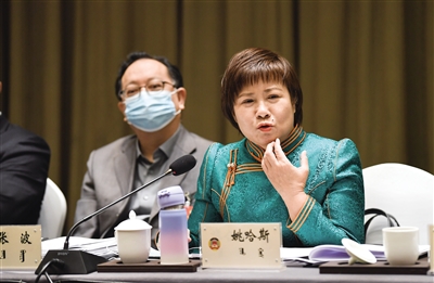 1月22日,赤峰市代表团代表凌河结合工作实际,就当地政府带头优化营商环境和统筹推进乡村振兴发展等方面提出了建议。 本报记者 金泉 摄