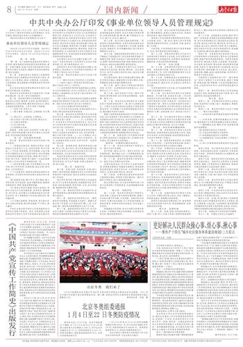 中共中央办公厅 印发《事业单位领导人员管理规定》 《中国共产党宣传工作简史》出版发行