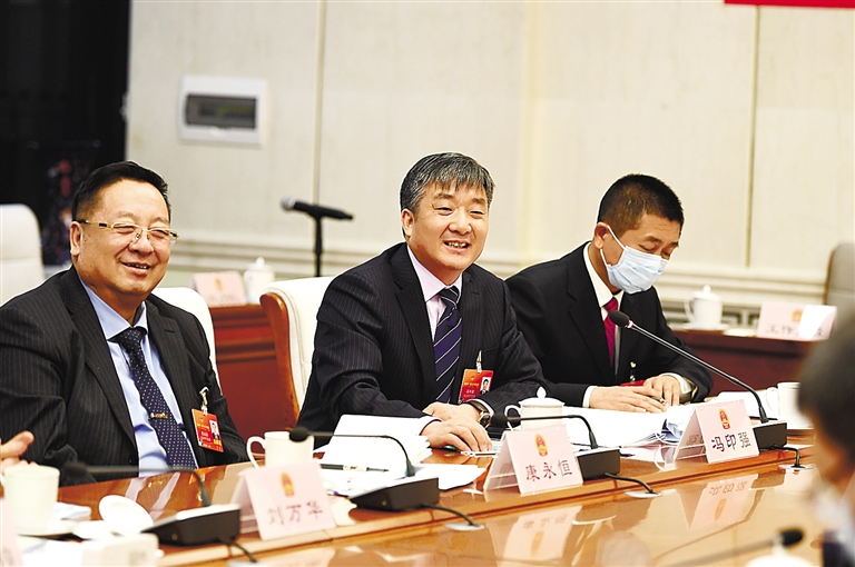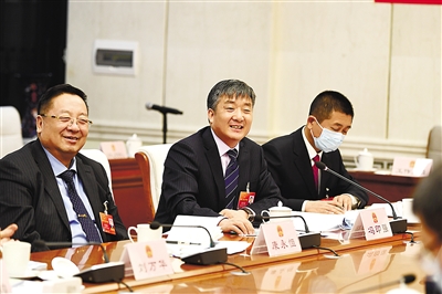 1月24日,乌海市代表团代表冯印强在讨论政府工作报告时建议,在乌海设立全区性的书法文化学院,让乌海的书法走出自治区,走向全国。本报记者 金泉 摄
