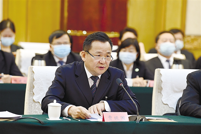 1月22日上午,贾振国委员参加自治区政协十二届五次会议经济、工商联等界别委员联组讨论时发言。本报记者 韩卿立 摄