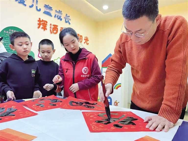 寒假期间,呼和浩特市玉泉区五塔前街社区党总支在党群服务中心开办公益托管班,为辖区儿童提供学习活动场所。公益托管班设置各类兴趣课程,实现寓教于乐,切实解决了假期家长照管孩子难的问题。图为托管班的孩子们正在学习书写春联。本报记者 郝佳丽 摄