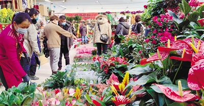 1月27日,顾客在位于呼和浩特市的园艺花卉市场里选购鲜花。春节临近,呼和浩特市各大花卉市场鲜花争奇斗艳,吸引了不少市民前来选购。本报记者 王磊 摄