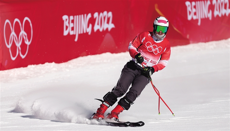 2月1日,一名试滑员在国家高山滑雪中心参加演练。当日是农历大年初一,位于北京冬奥会延庆赛区的国家高山滑雪中心举行全要素演练,工作人员按照赛时模式,对转播、颁奖仪式、新闻发布会等各环节进行了预演。国家高山滑雪中心赛时将承担高山滑雪滑降、超级大回转、大回转、回转等11个小项的比赛,共计产生11块金牌。新华社记者 陈斌 摄