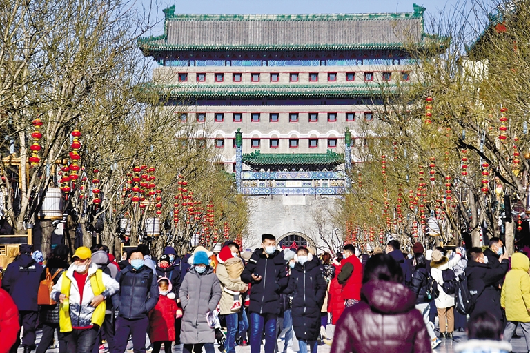 2月4日,游人在前门大街游览。当日是立春节气,众多市民和游人来到北京前门大街游览,享受春节假期。